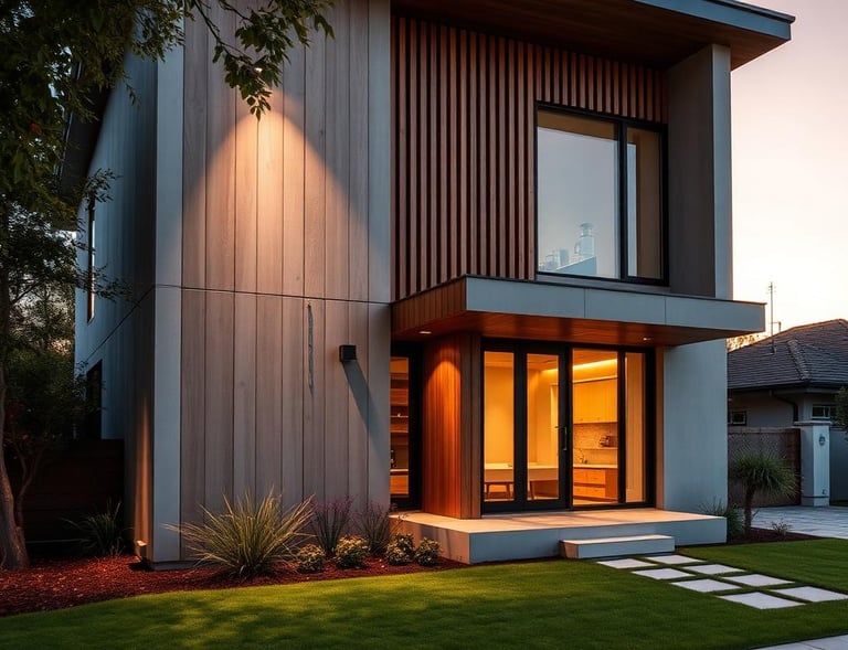 An eco-conscious family home integrated into a forested hillside. Living roofs and natural materials minimize environmental impact while maximizing connection to nature.